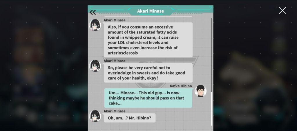 JAKDF Messages act like a group chat where the characters interact with Kafka (you). The responses are linear, but the writing is entertaining and helps flesh out character dynamics.