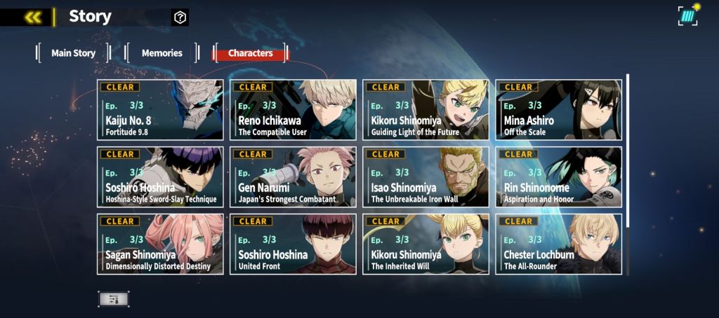 Memory Stages tackle key moments from the anime. These aren’t direct retellings of Season 1 or 2, but condensed highlight episodes that cover Kafka gaining his kaiju abilities all the way to the Season 1 finale where he gets captured. No spoilers, but these scenes are faithful enough that anime fans will recognize everything instantly. It’s a great way to relive the show inside the game.
